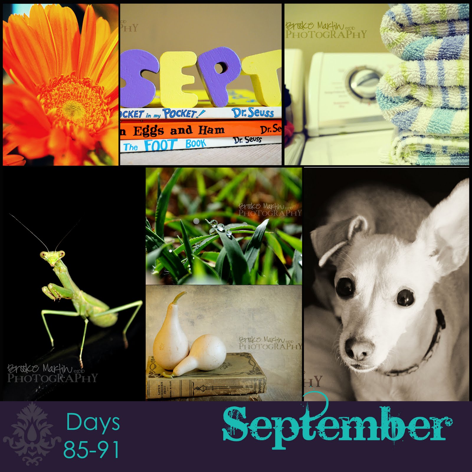 Well, its official...I have been on this 365 day journey for 100 days now! Well 101 today, but, I didn't get a chance to post this yesterday... This journey has had its ups and downs and there have been many days I've almost forgot to get a shot for the day and had to improvise or compromise creativity in order to have the photo for the day. All in all it's been very fulfilling, I've seen myself grow and I've seen my photography get better, I've stretched myself creativity and succeeded and I've also failed. But, I've learned, which was my goal when I took on this project. So, yesterday I had an idea in mind to commemorate my 100th day and ended up taking a series of photos, so I collaged them all up and thought I'd share with you! While I’m sharing and I have yet to share anything from this month I thought I'd share what I have for the month of September so far! I've been taking this journey month by month and I know that is the only way I've reach 100 photos...To all of you partaking in this journey I've enjoyed seeing your work and I wish you well as we all forge on ahead and get closer picture by picture to 365!